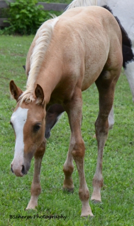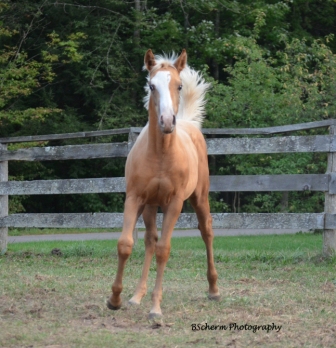 PHS Jiggs Dizzy Doll (Bugs) is an APHA/PtHA solid-bred palomino filly by Poco Doc Jiggs and out of PHS Executives Blue Bayou.
