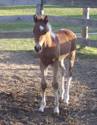 His grandsire, Executive Producer was a 1986 bay tobiano by Flying Executive (black AQHA) by AQHA Champion Pasamonte Paul, and out of Skippers Gay Music by APHA and Superior Halter Champion, Painted Skipper. He was 3rd 1986 stallion with limited showing, 1986 Reserve Champion Tobiano Color, 2nd in 1986 NYS PtHA Futurity, Reserve 1986 AMA stallion and 1987 Reserve Pinto Stock Champion (all for PtHA of NYS). Executive Producer was our herd sire for several years. We have kept some of his exceptional daughters and granddaughters for our breeding program. They are all level headed and super producers.