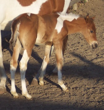 His dam, PHS Little Lady is a 1993 PtHA chestnut tobiano mare by Executive Producer and out of PHS Painted Lady. Little Lady is owned, loved and ridden by our son Benjamin and she’s one of the Schermerhorn family favorites. Her dam was the first horse we ever owned and her sire was our herd sire for many years. Little Lady is one of our best family trail horses. She is also used in our lesson program. Her first colt, Dingo, is a '04 palomino gelding and he is owned by our son, Benjamin.
